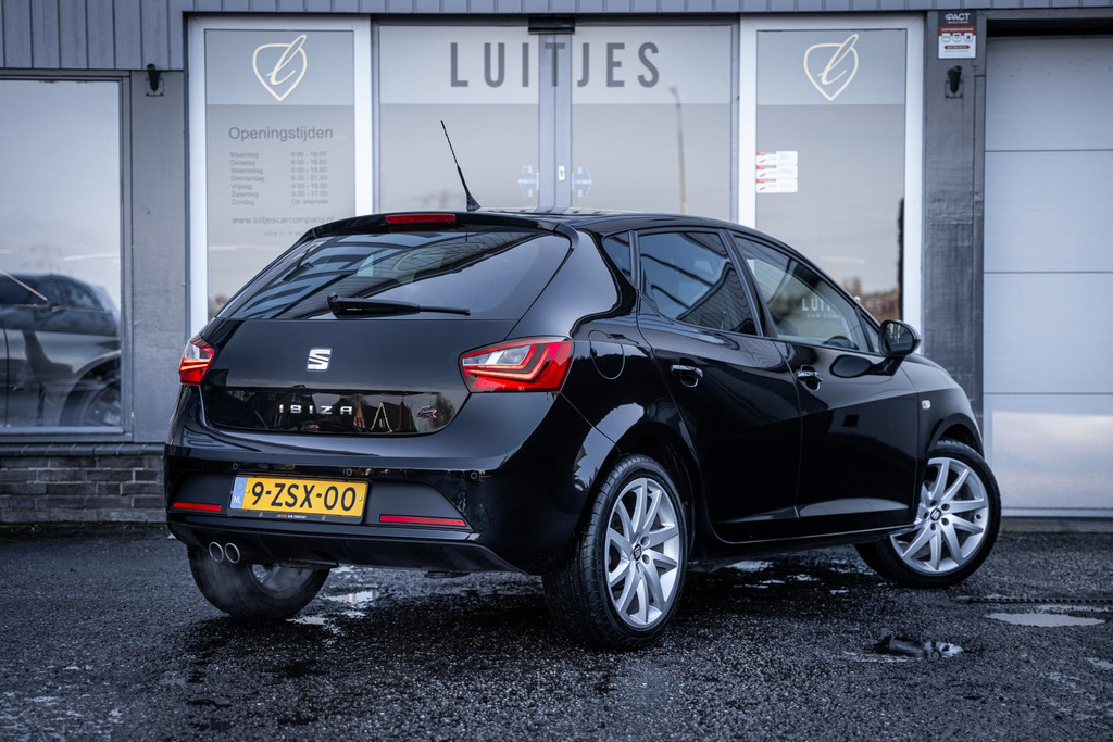 Sportief, zuinig én rijk uitgerust: Deze Seat Ibiza 1.2 TSI FR uit 2015 heeft het allemaal. Goede opties, zuiver verleden en goede condities! Dankzij de sterke maar efficiënte TSI-motor rijdt de auto heerlijk vlot en comfortabel. De FR-uitvoering zorgt daarnaast voor een sportieve uitstraling met onder andere een sportonderstel, sportstoelen en fraaie 17 inch lichtmetalen velgen.